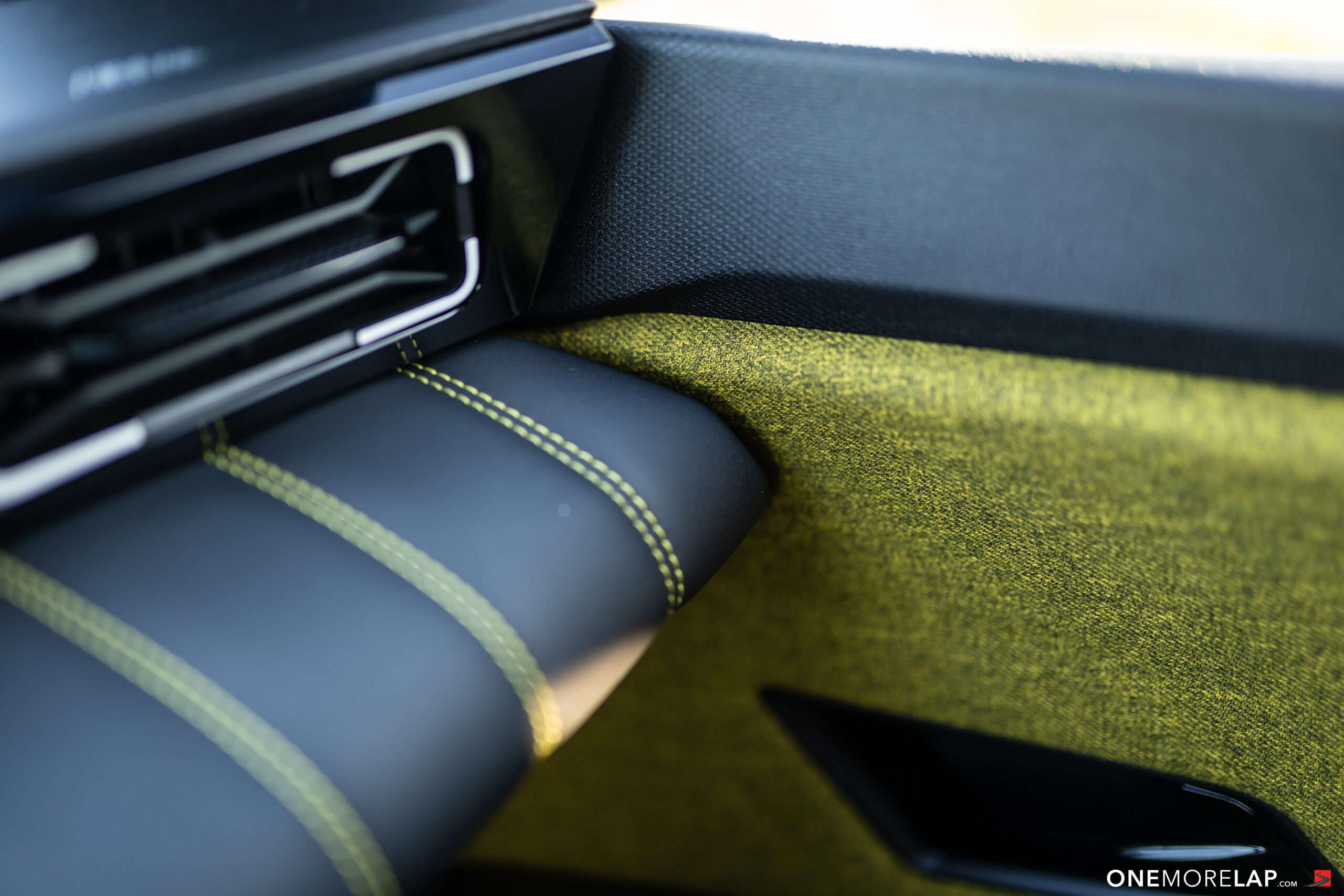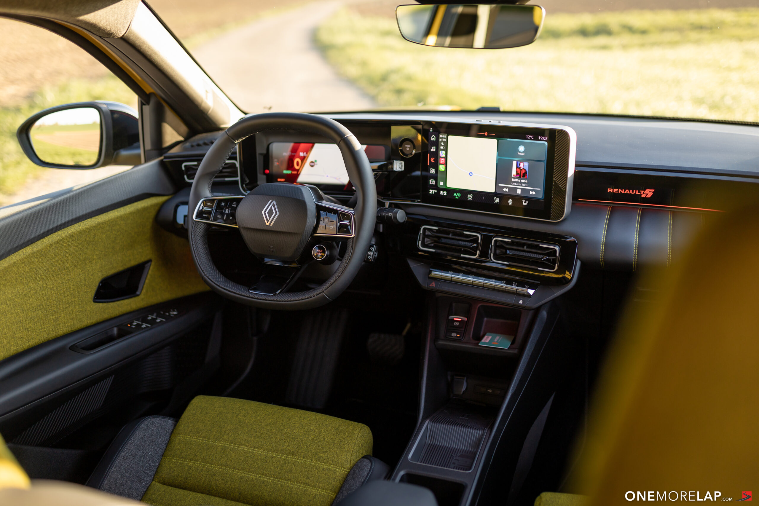 Kein nüchterner Zahlenblock, sondern poppige Farben, runde Kanten und verspielte Typografie. Renault zeigt hier Mut zur Form – endlich! Die Geschwindigkeit erscheint in knalligen Buchstaben, das Fahrzeugmodell in 3D zeigt sogar exakt die gewählte Lackfarbe. Die Materialwahl ist für die Preiskategorie überdurchschnittlich, als Beispiel dazu das belederte Armaturenbrett mit genähter gelber Kontrastnaht, die Verarbeitung solide.