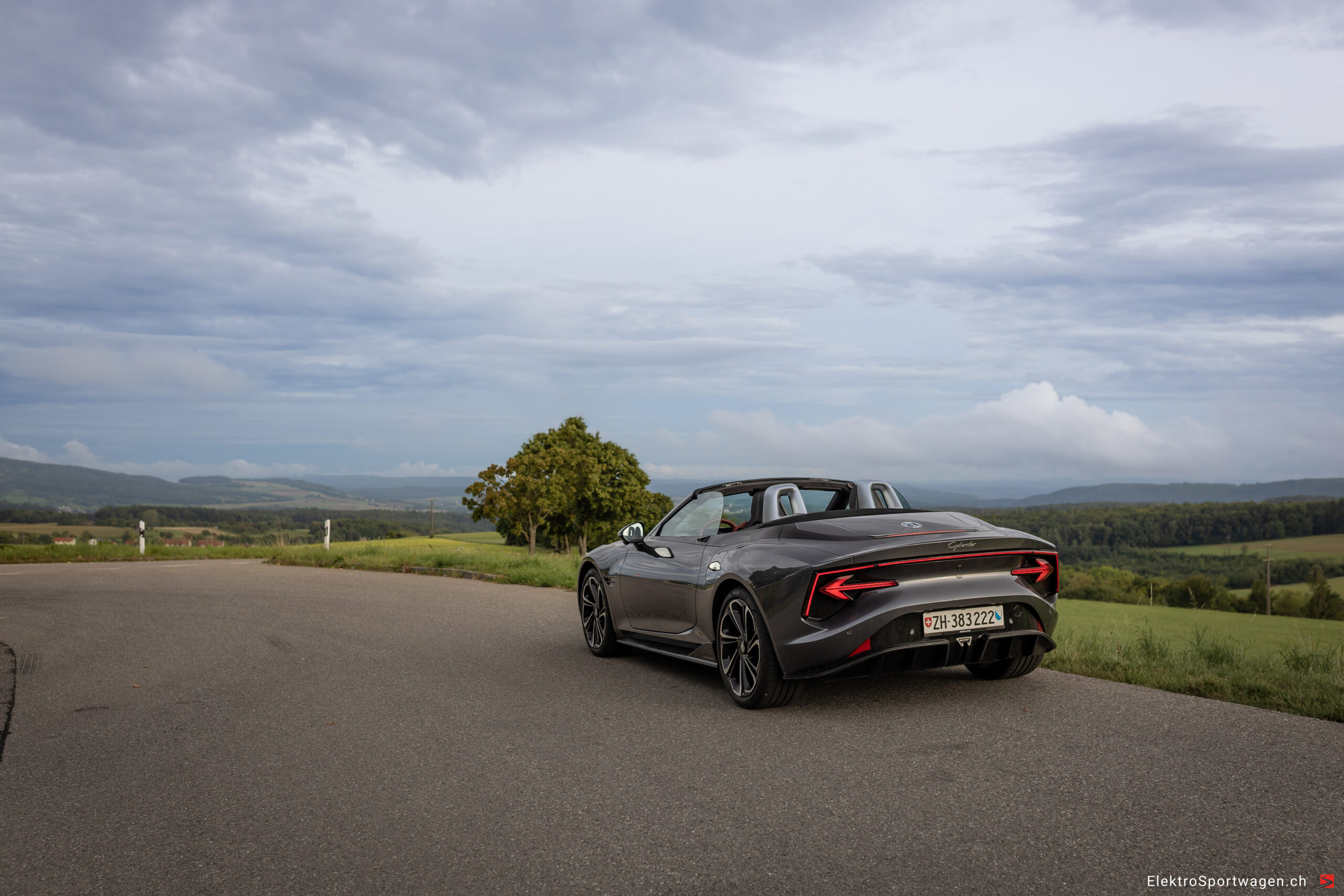 Ein elektrischer Roadster aus China mit britischen Wurzeln, gebaut auf einer reinen Elektroplattform, mit 510 PS, Allradantrieb und 77-kWh-Batterie. Zwei Türen, zwei Sitze, Stoffverdeck, knapp 4,5 Meter lang, 7-Jahre-Herstellergarantie und ein Preis, der alles andere als elitär klingt: rund 68’000 Franken für die Topversion mit Allrad.
