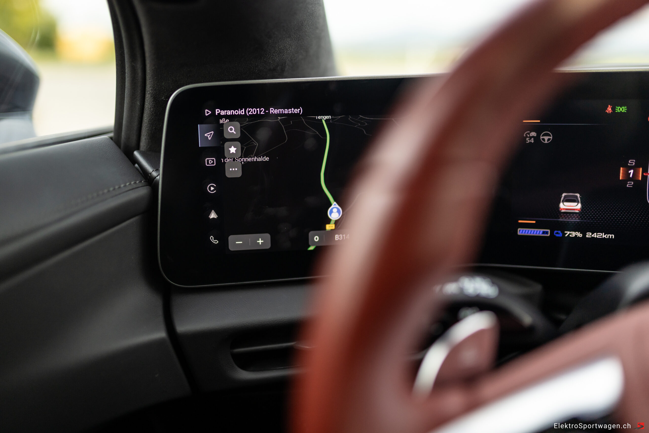 Das unten abgeflachte Lenkrad liegt hervorragend in der Hand und vermittelt auf Anhieb ein sportliches Gefühl. Die Lenkung selbst ist direkt genug, um Landstrassen präzise zu schneiden, aber nicht hypersensibel. Im „Supersport“-Modus legt sie an Gewicht zu, ohne künstlich zu wirken – angenehm neutral, ohne den typischen Gummiband-Effekt vieler E-Autos.